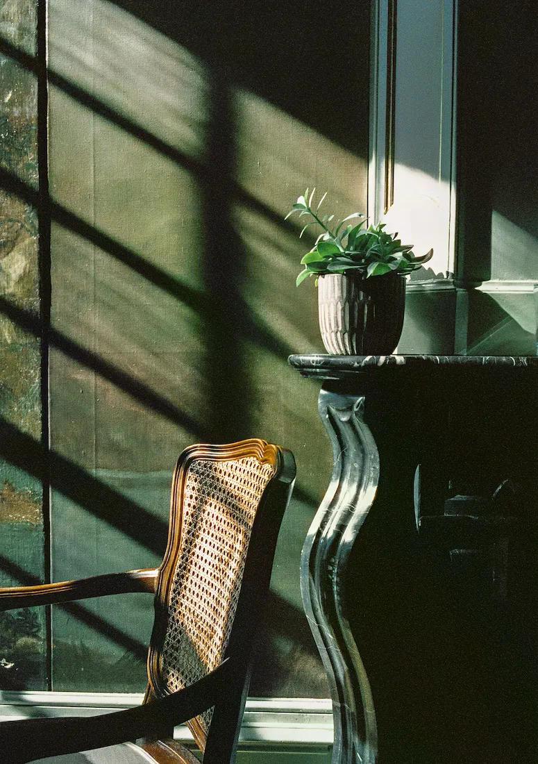 Das Bild entstand im limburgischen Schloss Vaalsbroek (NL) am Rande einer Hochzeitsfeier. Während sich die Hochzeitsgesellschaft in den Räumen und dem Schlosspark verteilte, fiel mir diese ruhige, seltsam entrückte Raumecke auf, die in dieser Ausschnitthaftigkeit den Trubel um sie herum gar nicht erahnen lässt.