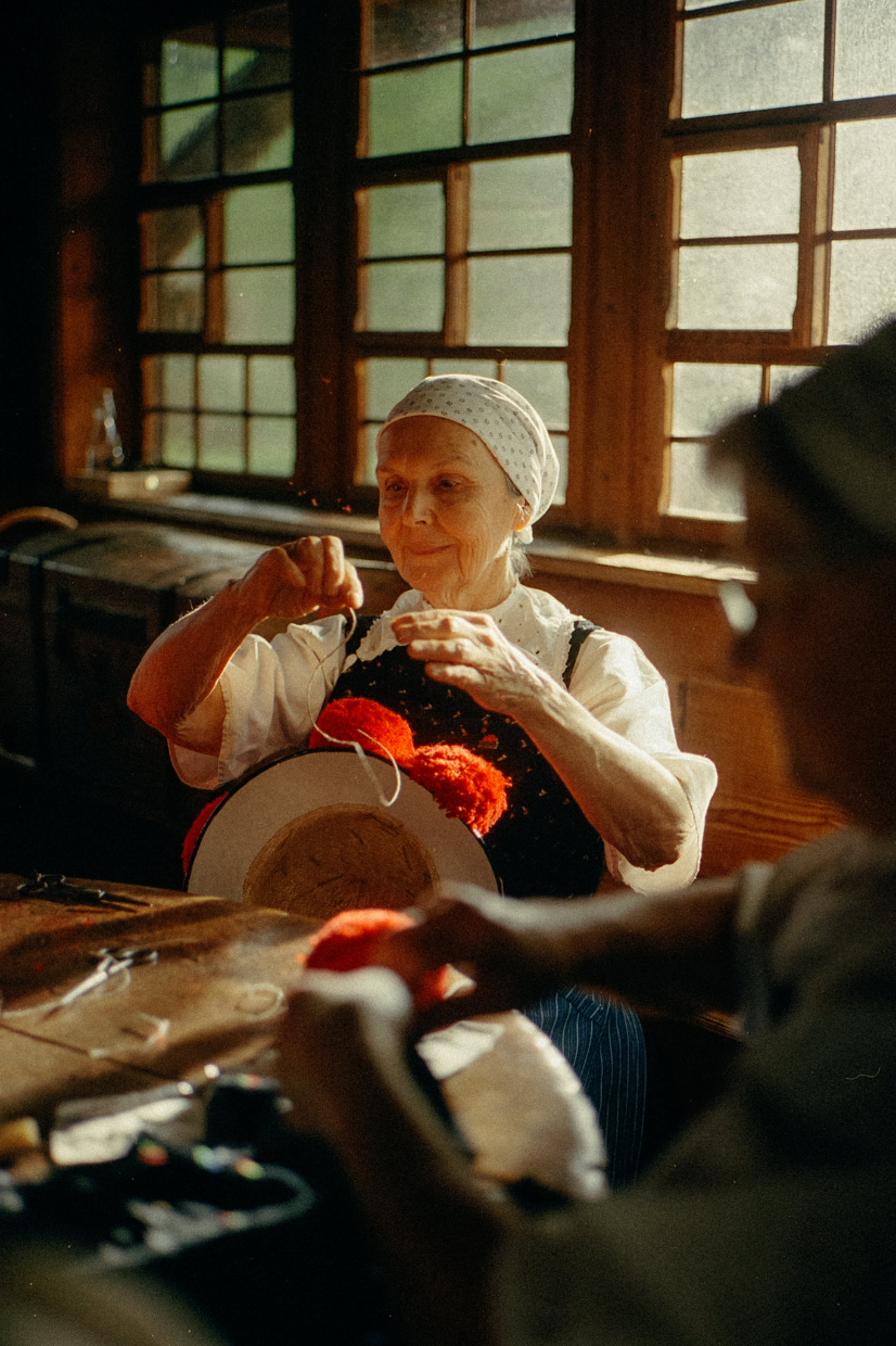 Es ging um einen Schuh, der sich gestalterisch auf den Bollenhut bezieht: eine regionale Tradition aus dem Schwarzwald, gebrochen durch ein modernes Produkt. Die Aufgabe war, den Schwarzwald als Reiseziel attraktiv zu zeigen Aber nicht nur über Landschaft, sondern auch über Kultur, Geschichte und Menschen vor Ort. Gedreht und fotografiert wurde in einem Freilichtmuseum mit Protagonist:innen, die diese Traditionen im Rahmen von Vereinen, Veranstaltungen und musealer Arbeit sichtbar halten.
